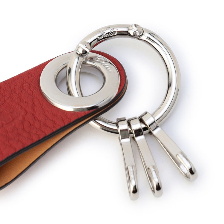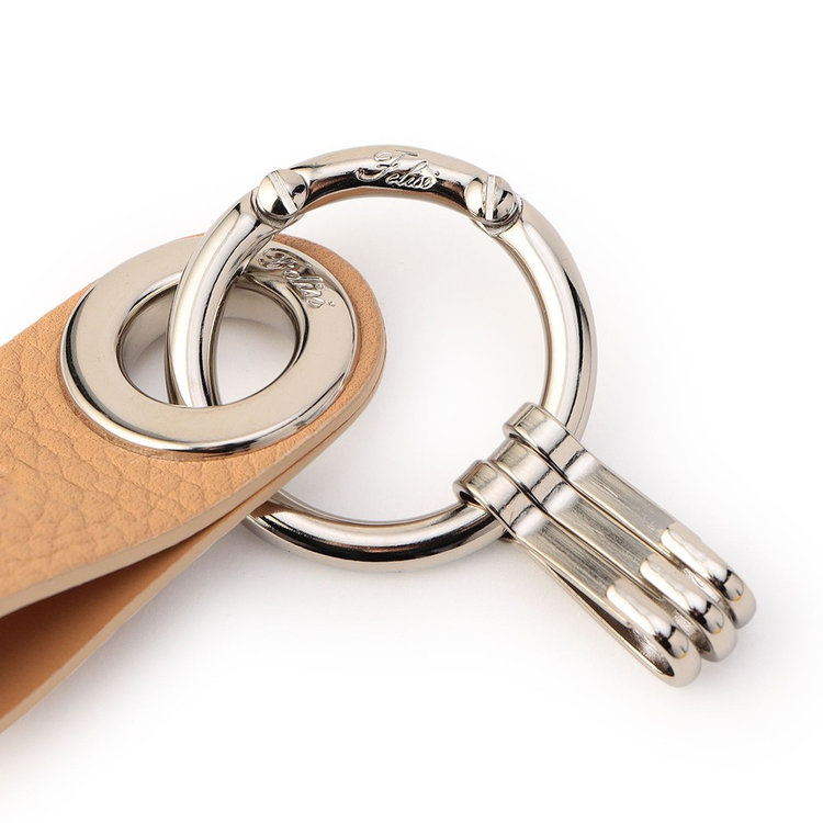 鍵を取り外ししやすい形状のフックには、スマートキーなども取り付け可能。ミニマルな機能性にFelisiらしいクラフツマンシップが共存するキーホルダーは、贈りものとしてもおすすめです。