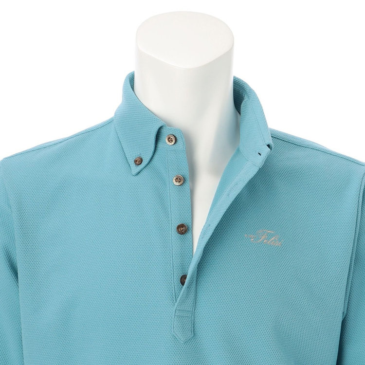 ゴルフウェアとしての実用性とクラシカルな風格を兼ね備えた、鹿の子生地のボタンダウンプルオーバーシャツ。スポーツシーンに最適な優しい着心地と、大人に相応しい清潔感のあるルックスで、ゴルフシーンだけでなく日常着に活用しやすい上質さを持ち合わせています。前面にFelisi IL GOLF(フェリージ イル ゴルフ)のブランドロゴを刺繍、背面にはメタルプレートをあしらい、シンプルなデザインに華やかさを取り入れました。今季Felisi Golf(フェリージ ゴルフ)を象徴するディテールです。