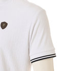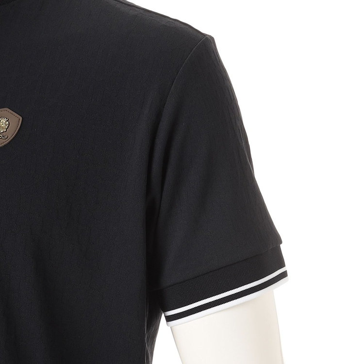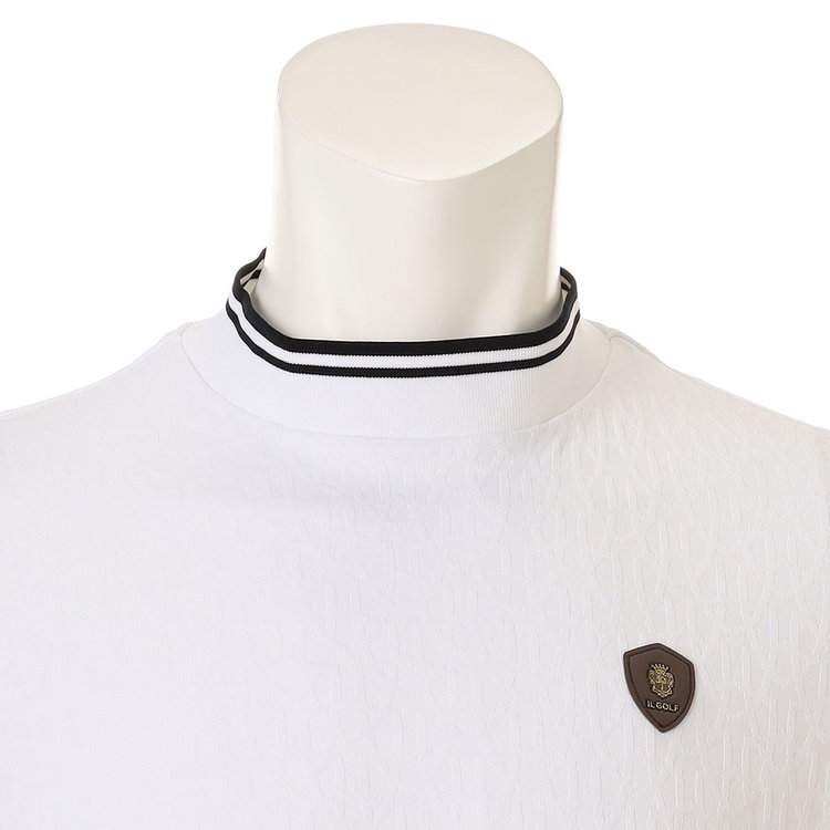ゴルフウェアとしての実用性とクラシカルな風格を兼ね備えたハイネックTシャツ。ブランドを象徴するモノグラム柄をボディと同配色で表現したオリジナルジャカードの生地が、さり気ないアクセントを加えてくれます。襟の高さはジャケットとも合わせやすい約4.5cm。品の良い印象のため日常使いにもおすすめです。前面にはFelisi IL GOLF(フェリージ イル ゴルフ)のブランドロゴを上質な人工皮革で配し、シンプルなデザインに華やかさを取り入れました。