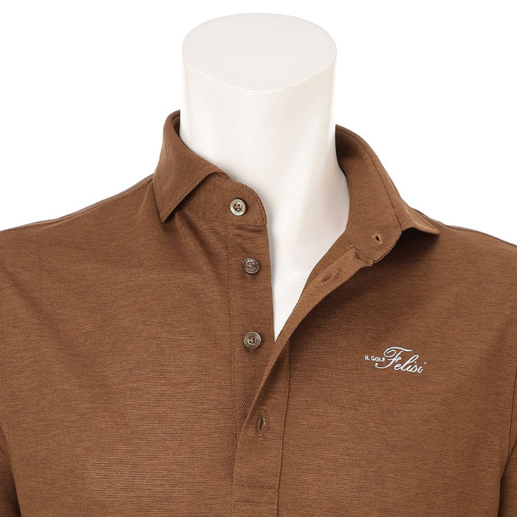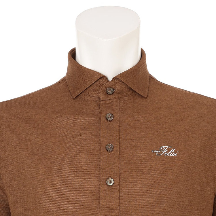 ゴルフウェアとしての実用性とクラシカルな風格を兼ね備えたプルオーバーシャツ。シャリ感のある軽やかな着心地が魅力で、日常着としても活用しやすく上質さを持ち合わせた大人に相応しい1着です。前面にFelisi IL GOLF(フェリージ イル ゴルフ)のブランドロゴを刺繍、背面にはメタルプレートをあしらい、シンプルなデザインに華やかさを取り入れました。