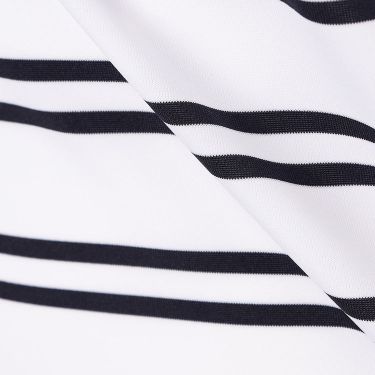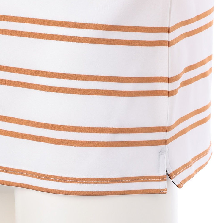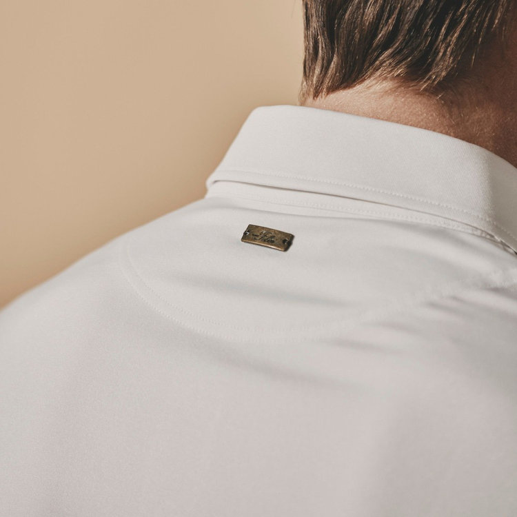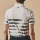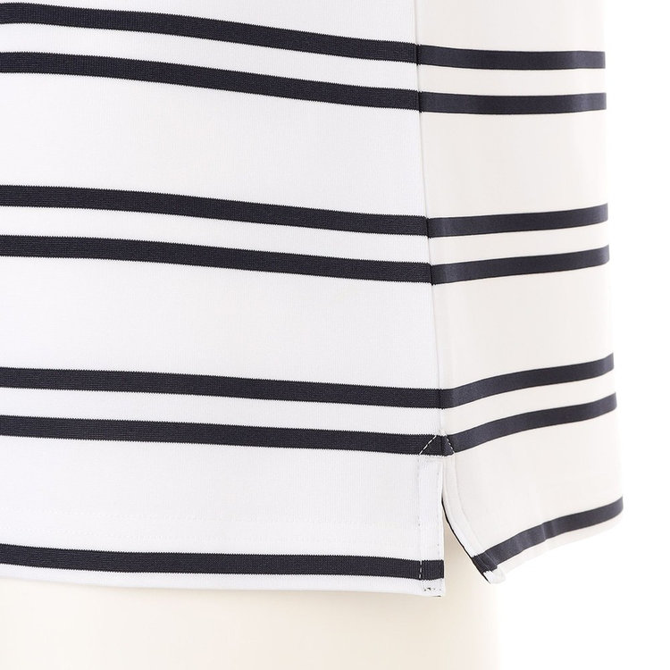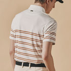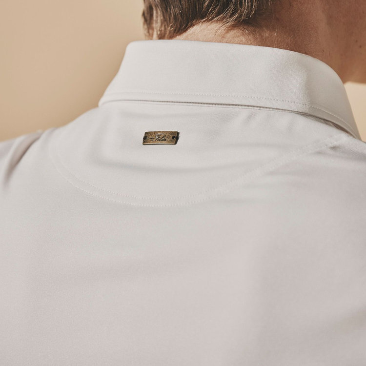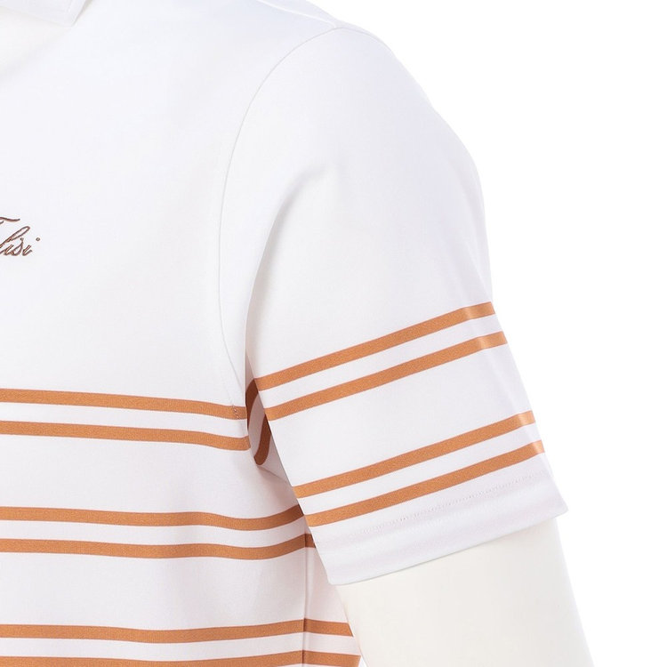 襟型にはイタリアらしいホリゾンタルカラーを採用。汎用性が高く様々なスタイルにマッチします。前立ては、一般的なポロシャツと比べて長めに設定しており、タックインしても様になるようバランスを計算しています。袖はカフではなくカットソーデザインを採用。袖まくりが簡単にできるようゴルフシーンでの使い心地を考慮しました。