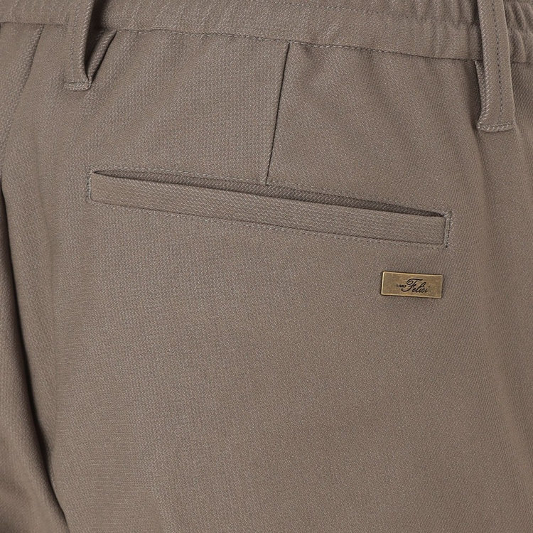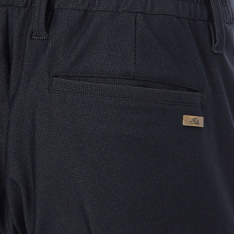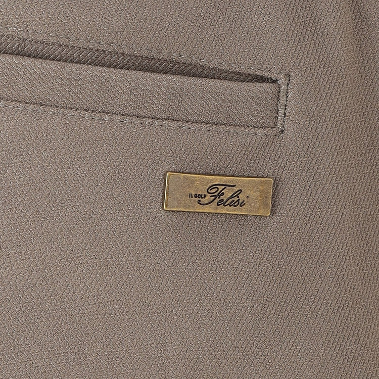 生地にはシーン、スタイルを選ばないナイロンベースのデニム調ジャージーを採用。ワークテイストがありつつも、しなやかで上品な微光沢感を放つドレッシーな表情に、ストレッチ・耐久性を兼ね備えたハイブリッドな穿き心地が特長です。バックポケットにはFelisi IL GOLF(フェリージ イル ゴルフ)のメタルプレートをあしらい、シンプルなデザインに華やかさを取り入れました。Felisi IL GOLFを象徴するディテールのひとつです。
