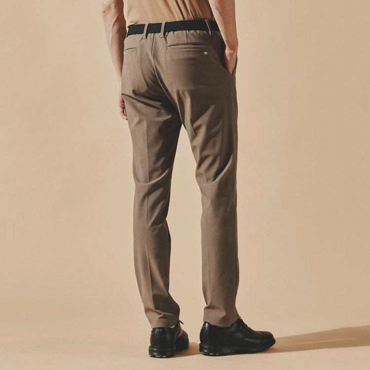 正統派ドレスパンツのシルエット・ディテールに、ゴルフウェアらしい機能美を融合したトラウザーズ。シルエットは緩やかなテーパードを採用し、ゴルフに適した動きやすいバランスに仕上げているため、オンオフ兼用で穿きやすい1本です。